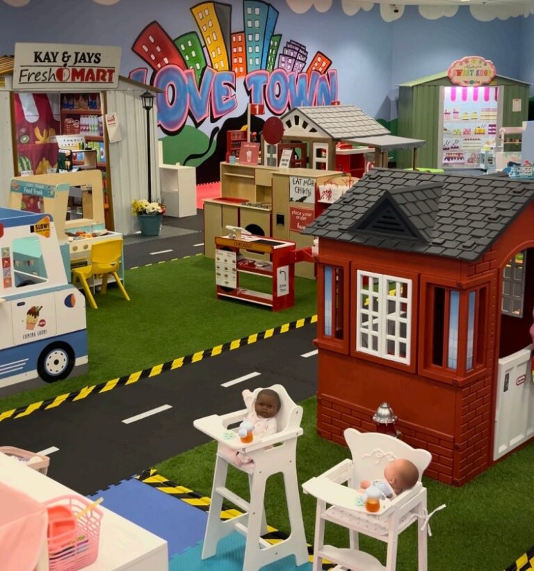 Children can also shop for household items at the Kay & Jay Fresh Mart grocery store and don’t forget to grab an ice-cold lemonade on the way out! Lovetown encourages imaginative play, social interaction, and endless creativity as kids create their own adventures with friends and family.