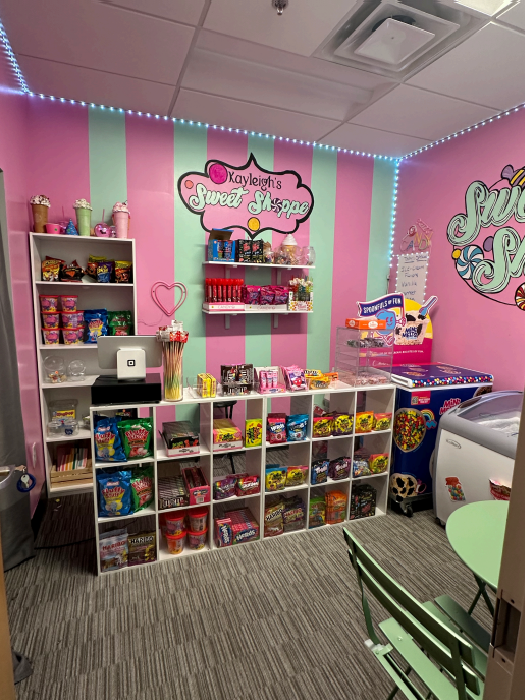Step into Kayleigh’s Sweet Shoppe, a colorful pretend candy store where imagination is just as sweet as the treats! Kids can play shopkeeper or customer while exploring shelves filled with pretend goodies, ice cream treats, and fun dessert-themed play items.